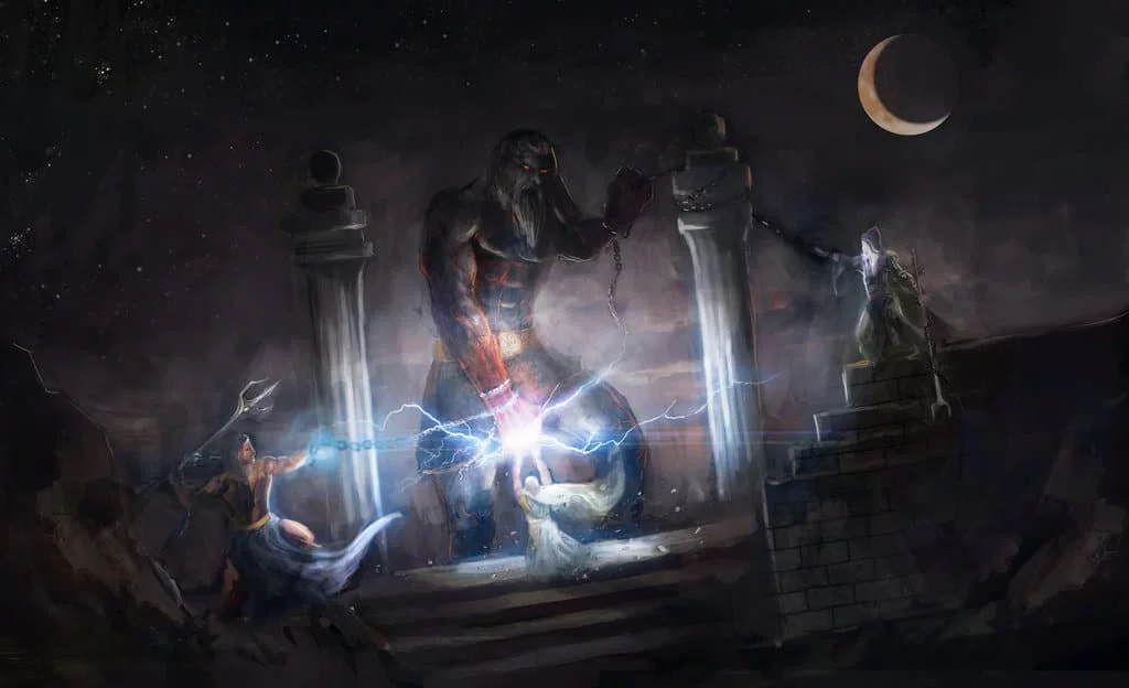 Este dios no sólo liberó a sus hermanos de su padre, sino también a los Cíclopes y Hecatónquiros quienes eran hermanos de Cronos y estaban encerrados en el oscuro Tártaro. Como muestra de agradecimiento, los Cíclopes le obsequiaron el rayo que había sido escondido por Gea.